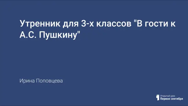 Представлен сценарий утренника для 3-х классов по теме: "В гости к А.С. Пушкину".