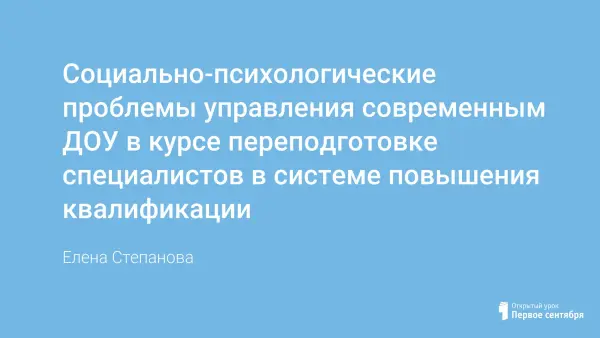 Социально-психологические проблемы руководства современным ДОУ функционально усложнили требования к его руководителю и значительно расширили профессиональное поле его управленческой деятельности. Авторская разработка занятий учебного раздела "Психология и современность" образовательной программы для курсов повышения квалификации управленческих кадров дошкольных образовательных учреждений представляет вариативный подход к изучению содержания данной проблемы.