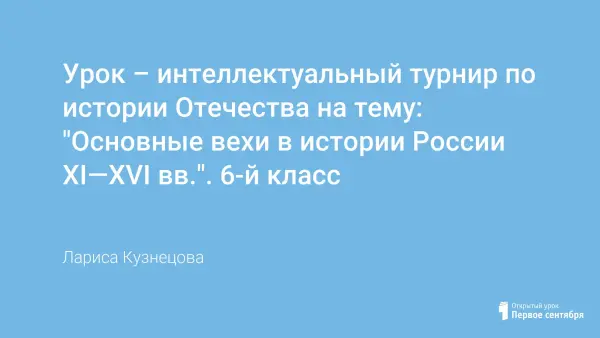 Урок истории проведен в нетрадиционной форме - интеллектуальный турнир "Куча-мала" по теме: "Основные вехи истории России XI–XVI вв." Полагаю, чтобы овладеть вниманием учащихся, надо их прежде всего удивить, заинтересовать. Поэтому использую различные игровые формы, где сочетаются устные, письменные, индивидуальные, групповые работы учащихся.