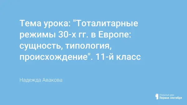 Тема урока: "Тоталитарные режимы 30-х гг. в Европе: сущность, типология, происхождение". 11-й класс