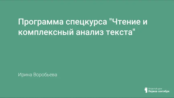 Спецкурс "Чтение и комплексный анализ текста" - курс, альтернативный традиционным урокам домашнего чтения; интегрированный, который находится на стыке русского и английского языков и литературы и призван способствовать формированию у учащихся интереса к чтению на английском языке.