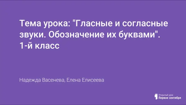 Тема урока: "Гласные и согласные звуки. Обозначение их буквами". 1-й класс
