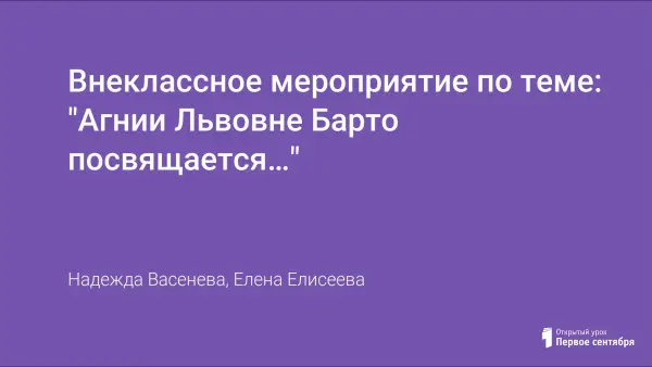 Внеклассное мероприятие по теме: "Агнии Львовне Барто посвящается…"