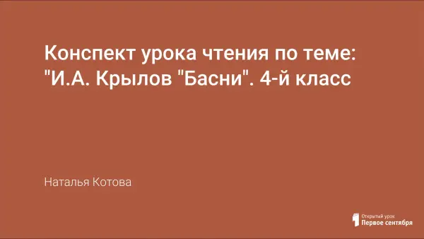 Басни И.А. Крылова - благодатный материал для организации уроков-викторин, для развития выразительного чтения, актерского мастерства, чувства юмора у младших школьников. Представленный конспект урока позволяет обобщить знания детей о творчестве И.А. Крылова, его басен в форме инсценировок, выразительного чтения, чтения по ролям, с использованием творческих заданий.