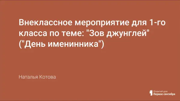 Форма игры "Зов джунглей" для проведения праздника "День именинника" в 1-м классе выбрана не случайно. Ребята недавно пришли в школу, им нужно как можно лучше узнать друг друга, проявить себя, и именно команда может в этом помочь. Кроме этого, все дети любят животных, и им интересно быть в их роли.