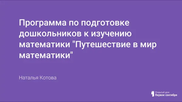 Родителей и педагогов всегда волнует вопрос, как обеспечить полноценное развитие ребёнка в дошкольном возрасте, как правильно подготовить его к школе. Один из показателей интеллектуальной готовности ребёнка к школьному обучению - уровень развития математических способностей. Актуальность данного вопроса натолкнула на мысль создать программу по подготовке ребёнка 5–6-летнего возраста "Путешествие в мир математики".