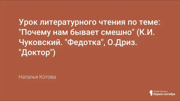 На примере стихотворения К.И. Чуковского "Федотка" и О.Дриз "Доктор" (УМК "Перспективная начальная школа") мы пытались показать детям примеры, когда нам смешно из-за отсутствия всяких логических связей, из-за путаницы и недопонимания, и, не проводя еще никакого обобщения, заставить их задуматься над секретом "смешного".