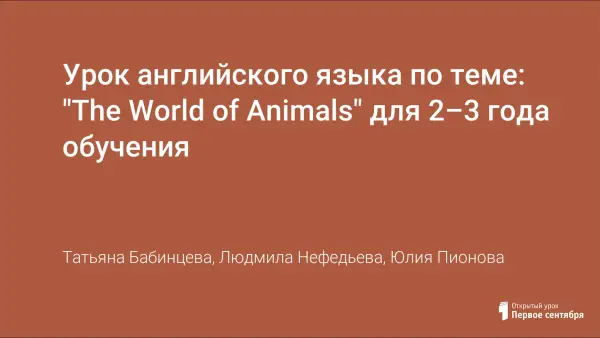 Урок английского языка по теме: "The World of Animals" для 2–3 года обучения