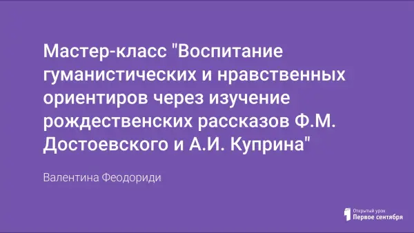 В колледже получила распространение практика мастер-классов, где педагоги представляют авторские подходы к реализации учебно-воспитательного процесса. Данная статья отражает результаты осмысления путей преподавания дисциплины "Детская литература", обеспечивающих воспитание у будущих педагогов гуманистических нравственных ориентиров через изучение рождественских рассказов Ф.М.Достоевского и А.И. Куприна, и содержит конспект мастер-класса.