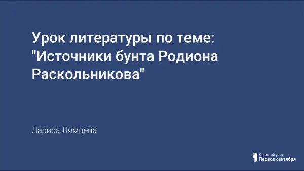 Занятие на тему "Источники бунта Родиона Раскольникова" отражает пути формирования в педагогическом колледже культуротворческой образовательной cреды. Цель занятия - выявить источники бунта Родиона Раскольникова на основе анализа условий жизни, в которых зарождаются античеловеческие теории; подвести будущих учителей к самостоятельному осмыслению конфликта между героями и миром, отрицаемым ими, противостояния циничных теорий и совести.
