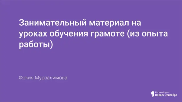 "Нигде игра не сливается так близко с делом и трудом, как именно в фонетике, и по этому ничто так не пригодно для начального обучения, как она. Нигде опять-таки эта игра не превращается с такой легкостью в серьезное, развивающее мыслительный аппарат дело, как в фонетике" (А.М.Пешковский – Методическое приложение к книге "Наш язык"). Систематическое использование занимательного материала и творческих заданий на уроках обучения грамоте развивает ум, творческую самостоятельность и вызывает большой интерес к языку.
