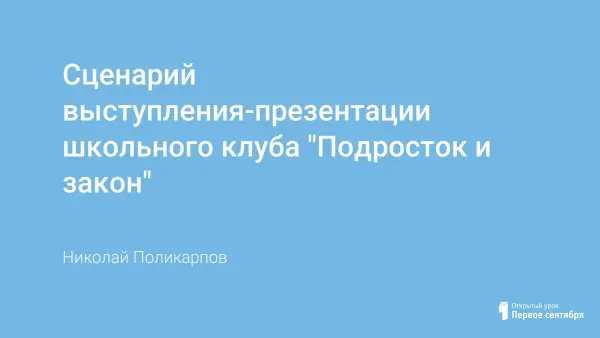 Вашему вниманию предлагается сценарий выступления школьного клуба "Подросток и закон" на праздновании "Дня Лицеиста".