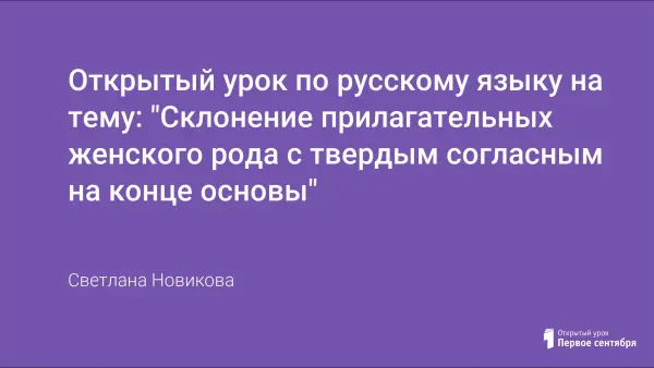Склонение прилагательных женского рода с твердым согласным на конце основы.