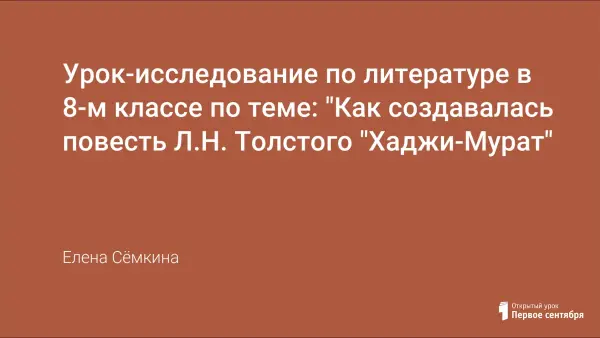 Урок-исследование по литературе в 8-м классе по теме: "Как создавалась повесть Л.Н. Толстого "Хаджи-Мурат"