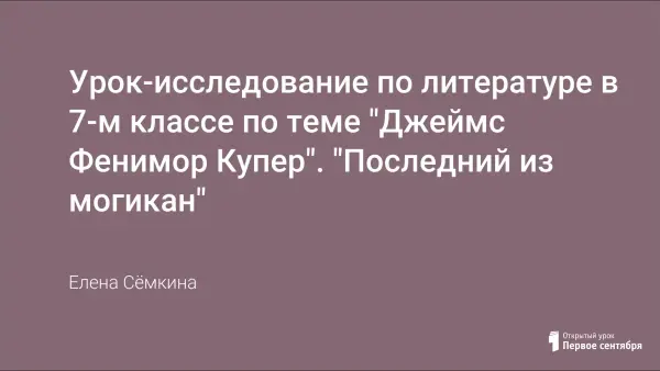Урок-исследование по литературе в 7-м классе по теме "Джеймс Фенимор Купер". "Последний из могикан"