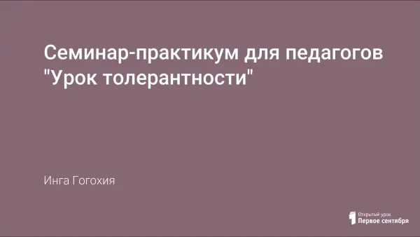 Цель семинара-практикума – ознакомить учителей с методами формирования и воспитания толерантности у старшеклассников. Можно использовать как в работе с самими педагогами, так и со старшеклассниками.