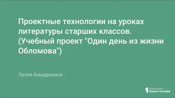 Метод проектов можно внедрять на уроках литературы по изучению теории литературы, биографий писателей, поэтов, уроках по изучению литературных направлений с использованием компьютерных информационных технологий. Результатом работы над проектом могут стать телекоммуникационные проекты, сценарий художественного фильма, эскизы к спектаклям, компьютерные презентации, литературные журналы, газеты, пьесы и т.д. Вашему вниманию представлен учебный проект "Один день из жизни Обломова" по произведению И.А.Гончарова "Обломов".
