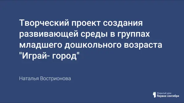 Данный проект разработан в силу особой актуальности проблемы адаптации младших дошкольников к условиям детского сада, а также совершенствования развивающей среды в МДОУ. Анализ состояния адаптации младших дошкольников в возрасте от 2-х до 3-х лет, а также игровой среды в группах раннего возраста направляет педагогов детского сада на поиск новых, более совершенных подходов к данной проблеме. Проект предполагает систему творческих методов в организации игрового пространства младших дошкольников на основе «Играй-города».