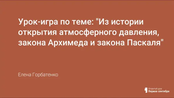 Урок-игра по теме: "Из истории открытия атмосферного давления, закона Архимеда и закона Паскаля"