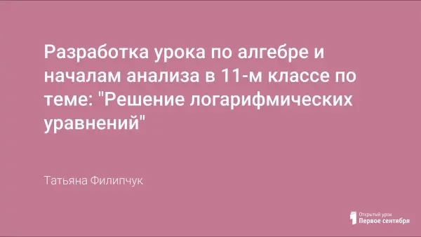 Урок обобщает и систематизирует знания методов решения логарифмических уравнений, способствует развитию логического мышления учащихся 11-го класса.