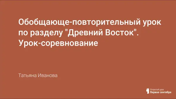 Урок-соревнование по разделу "Древний Восток" разработан в качестве завершающего, предвосхищающего итоговый контроль по теме.