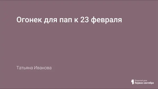 Мероприятие проводилось учителем в классе, где уже проводился "Огонек для мам". Ученики подбирают фотографии дедушек, пап для стенгазеты. Праздник рекомендуется проводить в 8–9-х классах. Данный праздник способствует большему уважению к папам, содействует сплочению семьи, развивает творческие способности учащихся и создает доброжелательную атмосферу в коллективе.