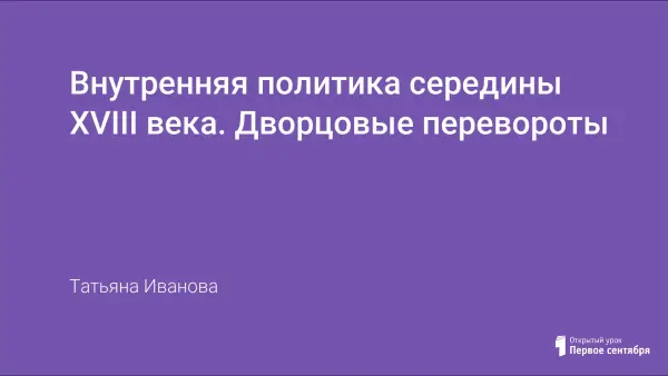 Урок проводится как вводный к серии уроков периода после Петра Великого (середина XVIII века). На уроке учащиеся знакомятся с эпохой дворцовых переворотов, внутренней и внешней политикой "временщиков". На протяжении нескольких лет учитель использует фрагменты из программы Л.Парфенова "Намедни" для формирования представления об императорах, их отношении к России, о морально-нравственных проблемах.