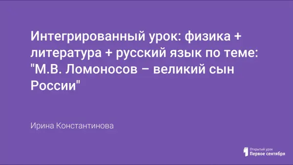 усвоения основ наук в школе. Данная разработка позволяет раскрыть выдающуюся роль русского учёного М.В.Ломоносова в развитии российской и мировой культуры и тем самым показать возможности влияния личности на многие процессы, происходящие в развитии общества; показать тесную взаимосвязь и влияние её на ход исторического развития естественных наук и литературы.