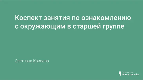 Урок экологического образования. Развивает важнейшие операции мышления: анализ (наблюдая за объектами природы, дети рассматривают и изучают строение живых объектов), сравнение (дети находят сходство и различие разных природных объектов), умение устанавливать взаимосвязи (дети выделяют способы приспособлений растений и животных к сезону и к среде обитания), обобщение (дети учатся объединять животных и растения в группы на основе выделения существенных признаков).