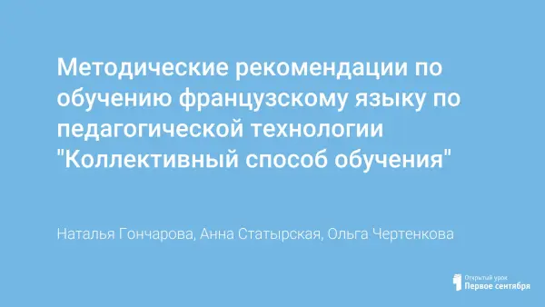 Методические рекомендации по обучению французскому языку по педагогической технологии "Коллективный способ обучения"