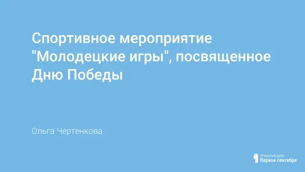 Творческая разработка спортивного мероприятия "Молодецкие игры" посвящена Дню Победы. Праздник способствует воспитанию патриотизма, развитию творческой активности, формирует нравственные и волевые качества личности, развивает двигательную активность воспитанников.