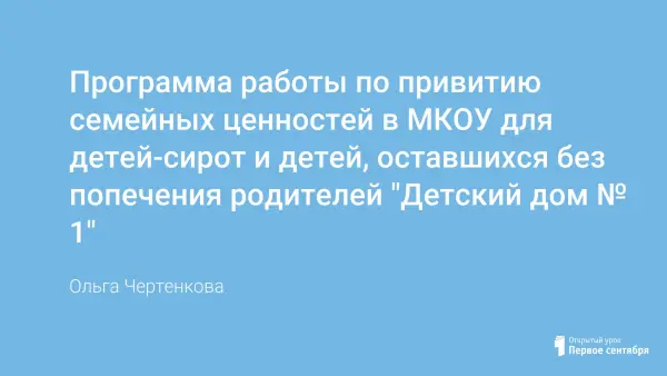 Об актуальности работы по привитию семейных ценностей в условиях детского дома. Деятельность педагогического коллектива и социально-психологической службы Детского дома № 1 по реализации работы, направленной на привитие семейных ценностей.