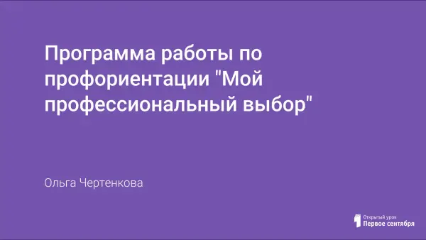 Работы по профориентации в МКОУ "Детский дом № 1" актуальна. Освещены цель, задачи, этапы программы "Мой профессиональный выбор", деятельность педагогического коллектива и социально-психологической службы по профориентационной работе.