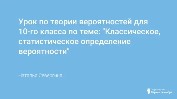 Преподавание основ курса "Теория вероятностей" в старшей школе, в полной мере позволяет учащимся овладеть конкретными математическими знаниями, необходимыми для применения в практической деятельности, расширить кругозор, сформировать представление о математике как части общечеловеческой культуры. Предлагаю вашему вниманию разработку урока для 10-го класса (с углубленным изучением математики) по теме "Классическое, статистическое определение вероятностей". Урок проводится в форме игры, в процессе которой проверяется умение учащимися решать различные задачи по данной теме.