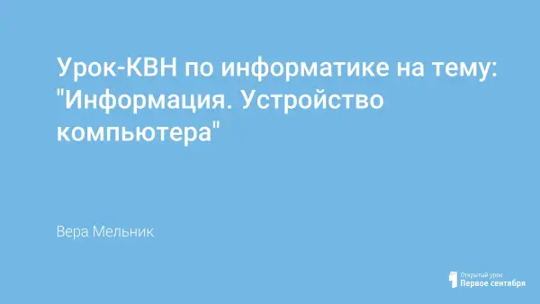 Устройство компьютера – одна из основных тем школьного курса "Информатика". Для закрепления темы "Устройство компьютера" я предлагаю провести урок-КВН, в котором проверяются основные знания по данной теме. Форма данного урока предполагает соревнование, что привлекает внимание многих учащихся. КВН повышает познавательный интерес к предмету, развивают волю к победе, находчивость, умение работать в команде.