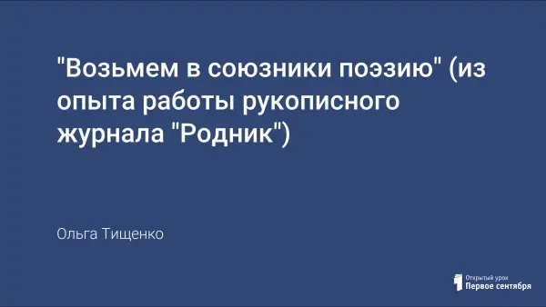 Этих-то ребят и объединил рукописный журнал "Родник", который был создан в
