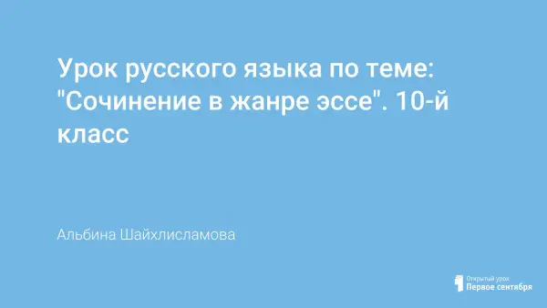 какой-то суммы знаний по предмету, но и выработку собственной позиции, собственного отношения к прочитанному: соразмышления, сопереживания, сопряжения своего и авторского "я". На сегодняшнем уроке мы попытаемся получить представление об особенностях незнакомого вам жанра – жанра эссе.