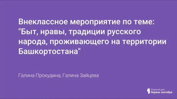 Внеклассное мероприятие по теме: "Быт, нравы, традиции русского народа, проживающего на территории Башкортостана"