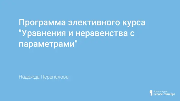 В курсе алгебры задачи с параметрами рассматриваются редко, бессистемно и вызывают трудности у учащихся. На экзаменах, как правило, они решаются сильными учащимися и частично. Возникла необходимость в разработке и внедрении в учебный процесс элективного курса по теме "Решение задач с параметрами". Тематика задач не выходит за рамки основного курса, но уровень их трудности - повышенный.