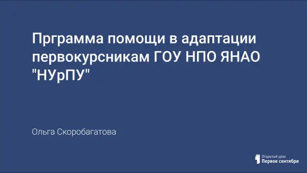 Адаптация первокурсников зависит как от индивидуальных свойств личности, так и от помощи окружающих. Данная программа помощи в адаптации первокурсникам ГОУ НПО ЯНАО «Новоуренгойское профессиональное училище» разработана с целью создания благоприятных условий для формирования и развития морально-психологических, деловых и профессиональных качеств будущего специалиста.