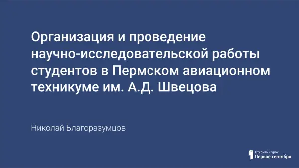 Необходимость проведения в учреждениях среднего профессионального образования научно-исследовательских работ актуальна и обоснована. Данный вид деятельности в учебных заведениях может проводиться не только при осуществлении внеучебной деятельности. В Пермском авиационном техникуме им. А.Д. Швецова накоплен богатый опыт проведения научно-исследовательских работ студентами. В его основе лежат следующие принципы: научность, системность, многоуровневость.