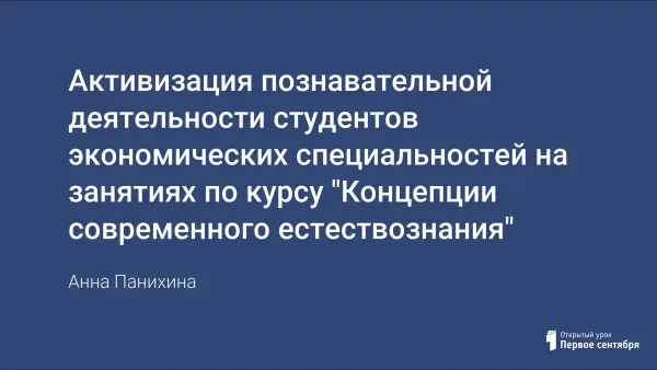 Активизация познавательной деятельности студентов экономических специальностей на занятиях по курсу "Концепции современного естествознания"
