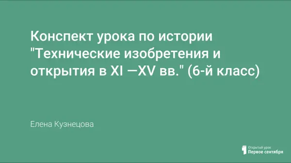 Урок по данной теме помогает формировать представление об открытиях и изобретениях в Европе в XI–XV веках и их значении. Развивает умения анализировать, определять главное. Урок проводится с использованием презентации. С целью расширения знаний учащихся и их кругозора ряд учащихся готовит сообщения. Урок призван пробудить интерес к технике и механике.