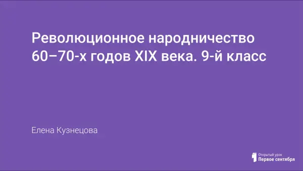 На уроке учащиеся знакомятся с идеологией народничества; выясняют особенности идеологии, неразрывную связь народничества с предшествующими поколениями революционеров 60-х годов, ошибочные представления народничества. Урок учит извлекать из текста необходимую информацию, работать с основными понятиями темы, делать выводы по отдельным вопросам темы в целом, анализировать прослушанный текст.