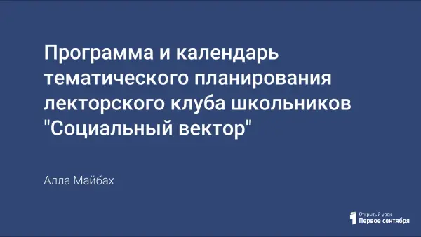 Предлагаем календарно-тематическое планирование лекторского клуба "Социальный вектор", расчитанное на 2 учебных часа в неделю.