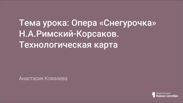 Тема урока: Опера «Снегурочка» Н.А.Римский-Корсаков. Технологическая карта