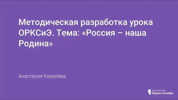 Методическая разработка урока ОРКСиЭ. Тема: «Россия – наша Родина»