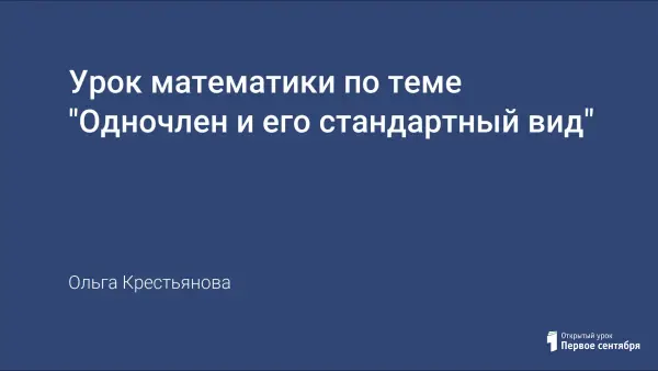 Представлен урок математики по теме "Одночлен и его стандартный вид"; сопровождается презентацией.