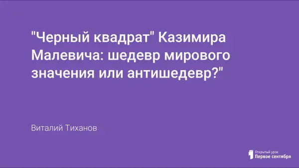Вниманию учителей предлагается стенограмма дебатов, посвящённых самой легендарной картине ХХ века - "Чёрному супрематическому квадрату" Казимира Малевича.