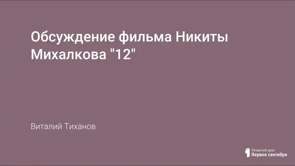 Стенограмма дебатов, посвящённых фильму "12" режиссёра Никиты Михалкова (2007 год). Фильм является римейком знаменитого фильма американского режиссёра Сидни Люмета "Двенадцать разгневанных мужчин".
